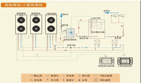 ⊙供冷、供暖、供熱水三種模式,功能強(qiáng)大,成本低,可節(jié)省運(yùn)行費(fèi)用30%;